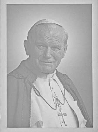 - Portret beatyfikacyjny bł. Jana Pawła II Pictoscapes wykonany na podstawie portetu autorstwa Grzegorza Gałązki za zgodą autora.